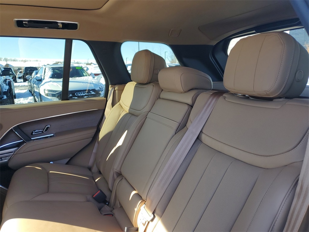 Fuji White 2026 Land Rover Range Rover SE AWD ZF 8-Speed Automatic 3.0L I6 Turbocharged Leather, 15 Speakers, 20-Way Heated and Ventilated Electric Front Bucket Seats, 4-Wheel Disc Brakes, ABS brakes, Adaptive suspension, Air Conditioning, Alloy wheels, AM/FM radio: SiriusXM w/360L, Anti-whiplash front head restraints, Apple CarPlay & Android Auto, Auto High-beam Headlights, Auto tilt-away steering wheel, Auto-dimming door mirrors, Auto-dimming Rear-View mirror, Auto-leveling suspension, Automatic temperature control, Brake assist, Bumpers: body-color, Compass, Delay-off headlights, Driver door bin, Driver vanity mirror, Driver's Seat Mounted Armrest, Dual front impact airbags, Dual front side impact airbags, Electronic Stability Control, Emergency communication system, Exterior Parking Camera Rear, Four wheel independent suspension, Front anti-roll bar, Front Bucket Seats, Front Center Armrest w/Storage, Front dual zone A/C, Front fog lights, Front reading lights, Fully automatic headlights, Garage door transmitter: HomeLink, Genuine wood console insert, Genuine wood door panel insert, Head restraints memory, Headlight cleaning, Heated door mirrors, Heated front seats, Heated rear seats, Heated steering wheel, Illuminated entry, Leather Shift Knob, Leather steering wheel, Low tire pressure warning, Memory seat, Meridian Sound System, Navigation system: Pivi Pro Connected Navigation, Occupant sensing airbag, Outside temperature display, Overhead airbag, Overhead console, Panic alarm, Passenger door bin, Passenger seat mounted armrest, Passenger vanity mirror, Perforated Windsor Leather Seat Trim, Power adjustable front head restraints, Power door mirrors, Power driver seat, Power moonroof, Power passenger seat, Power steering, Power windows, Premium audio system: Meridian, Radio data system, Radio: SiriusXM Satellite and HD Audio System, Rain sensing wipers, Rear air conditioning, Rear anti-roll bar, Rear fog lights, Rear reading lights, Rear seat center armrest, Rear window defroster, Rear window wiper, Remote keyless entry, Security system, Speed control, Speed-sensing steering, Speed-Sensitive Wipers, Split folding rear seat, Spoiler, Steering wheel memory, Steering wheel mounted A/C controls, Steering wheel mounted audio controls, Tachometer, Telescoping steering wheel, Tilt steering wheel, Traction control, Trip computer, Turn signal indicator mirrors, Variably intermittent wipers, Ventilated front seats, Ventilated rear seats, Weather band radio, Wheels: 21" (Style 5112), Leather.